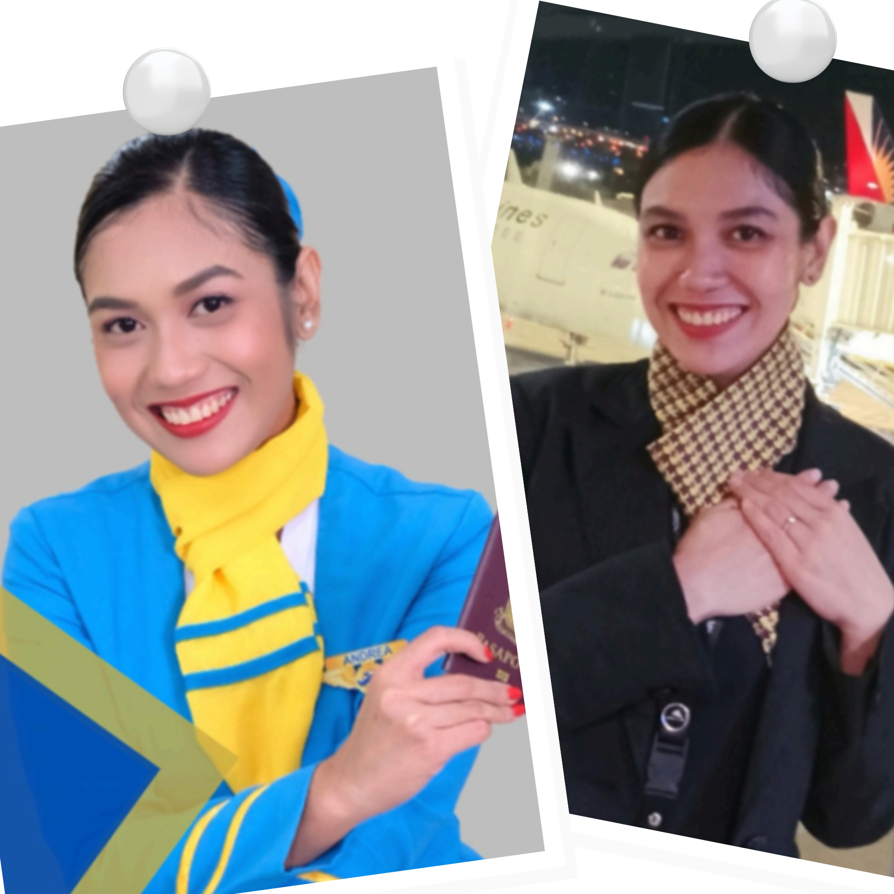 When the interview day came, I summoned all the confidence I mustered but unfortunately failed. Although heartbreaking, it didn't stop me from pursuing my dream. I applied again for the second time. And finally, I made it! During the training, I failed some exams, got depressed, and couldn't even count how many times I cried. It was always challenging. So I worked hard and fought to rise to the challenges before me. So now here I am, as I look at myself in the mirror wearing my uniform bearing the badge of the Filipino carrier Philippine Airlines Express. I succeeded. All the sacrifices, tears, sleepless nights, and sadness that I've been through were all worth it.