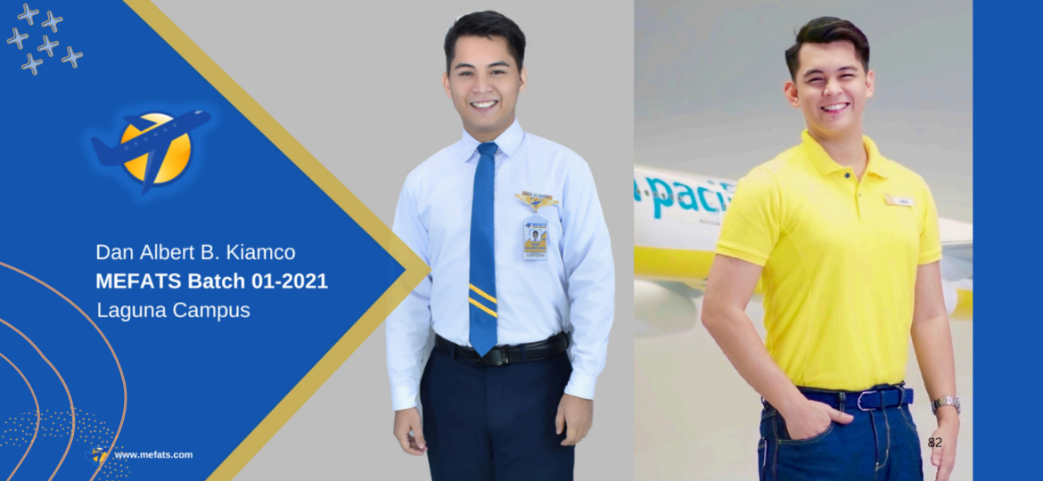 I used to be an aspirant and a dreamer. I recall being nervous and shy in front of my instructor on my first day at MEFATS, and wondering if I really belonged there; and MEFATS taught me to trust myself, to push myself to become better. At MEFATS, everyday is a new lesson, and every moment of it is special, they taught me how to achieve my goals and plans, step-by-step, because every step is important, and every step you'll learn something new that you can use to advance to the next rung of the ladder, and you won't realize it until you're at the top, and I also devised a step-by-step plan for achieving my objectives: my first step was enrolling in MEFATS Flight Attending School, and it was worthwhile. I may not yet have my wings, but my journey does not end here, because I am now on my second step towards my goal, and it is all thanks to MEFATS once again.